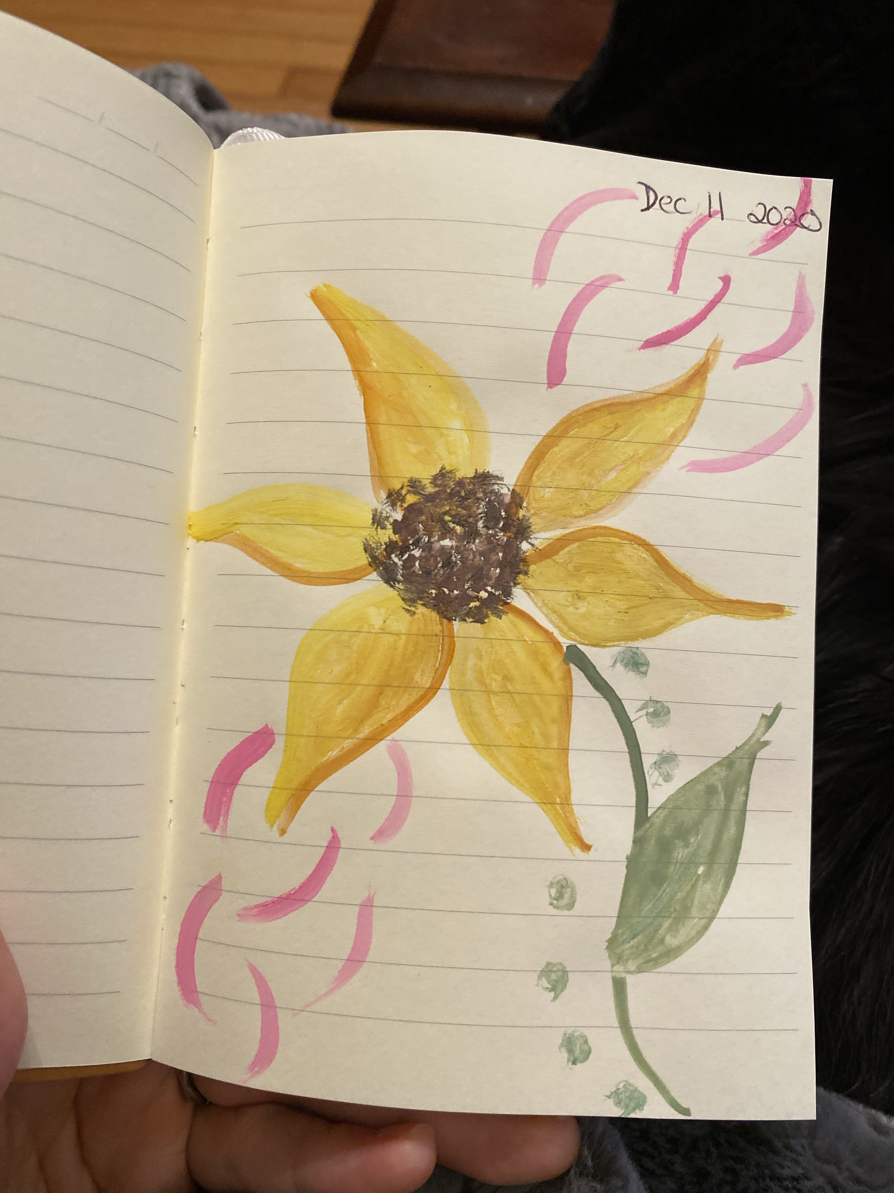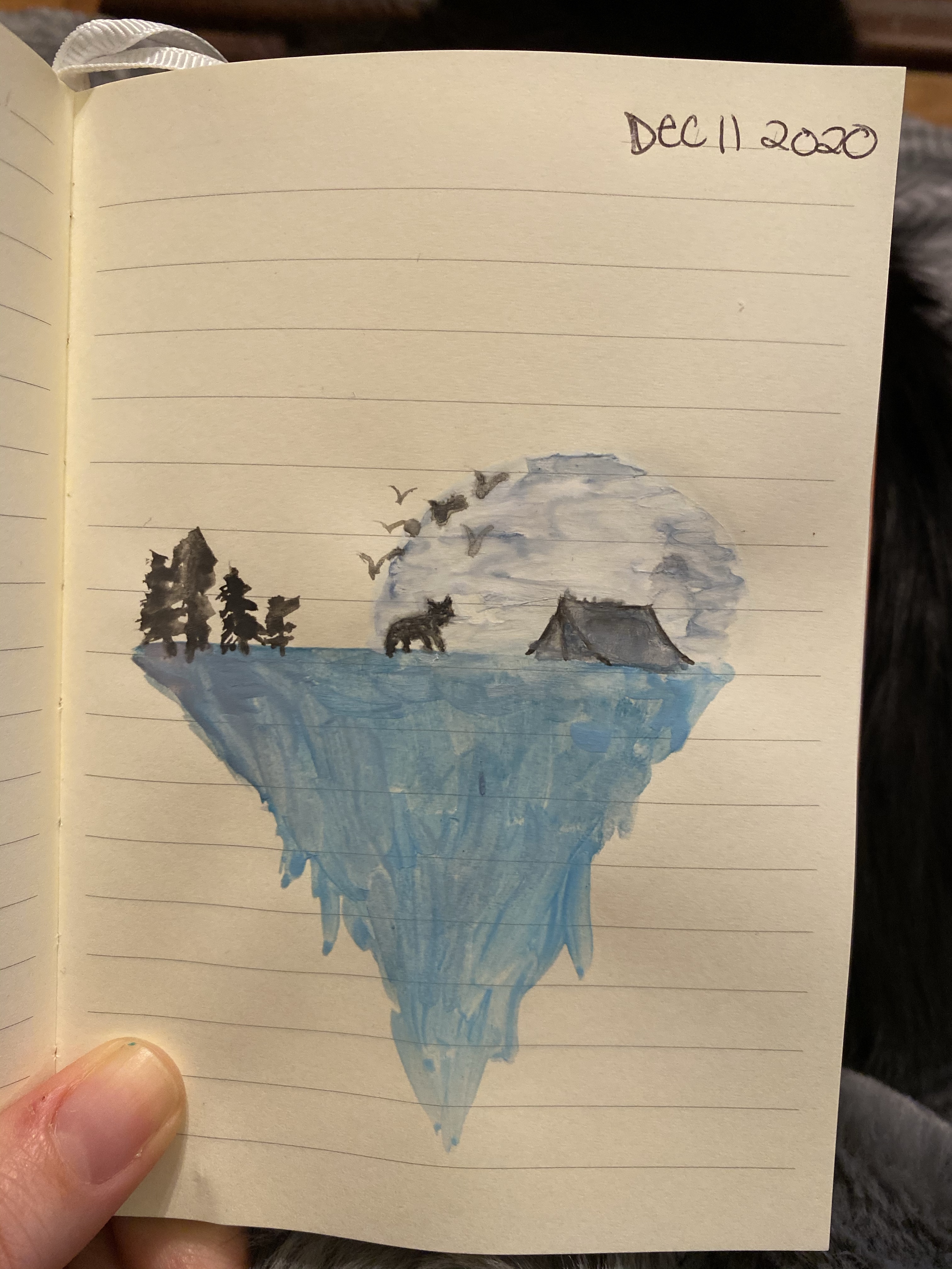 - Along the same line of coping strategies, I decided that I am going to start journaling daily/ as often as I can. If you have a favourite journal style or some good journal prompts send them my way or share them in the comments for everyone PLEASEEEE! I also was able to kill two birds with one stone and realized that I have been avoiding one of my coping strategies, which is painting, because the anxiety of making something that is not perfect was too great. So I started painting with watercolours in my journal and was able to get some relaxing painting done last night (pictures below)