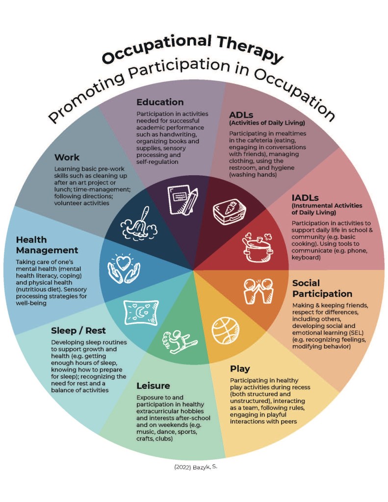 I have reached out to some friends and colleagues to help share their roles and scope of practices in the occupational therapy profession, and I will be writing different articles about the different populations and roles you might see an occupational therapist working in. My hope is that people will be able to read, learn and share about occupational therapy so that more people will be able to seek out services if it would benefit them.